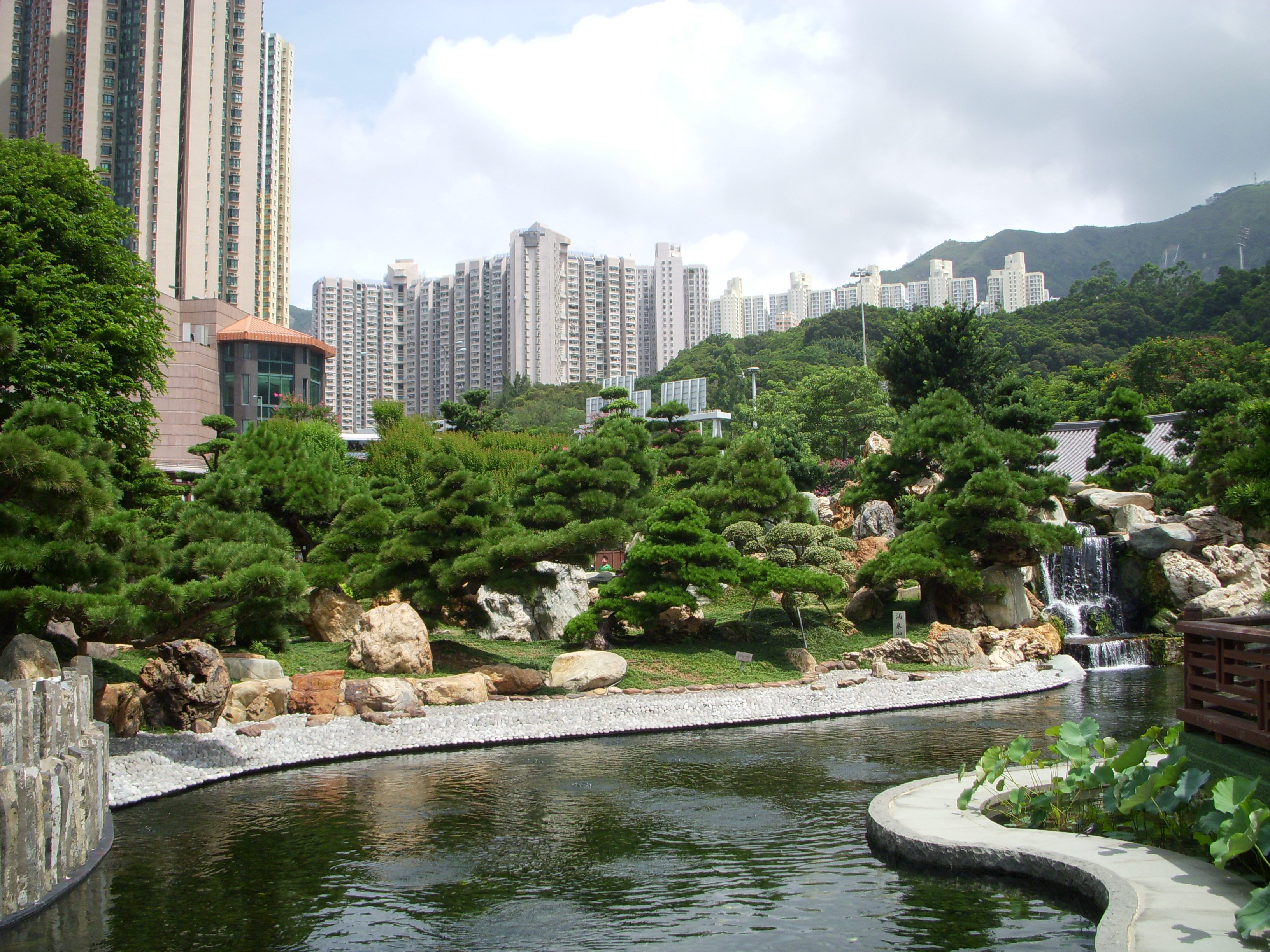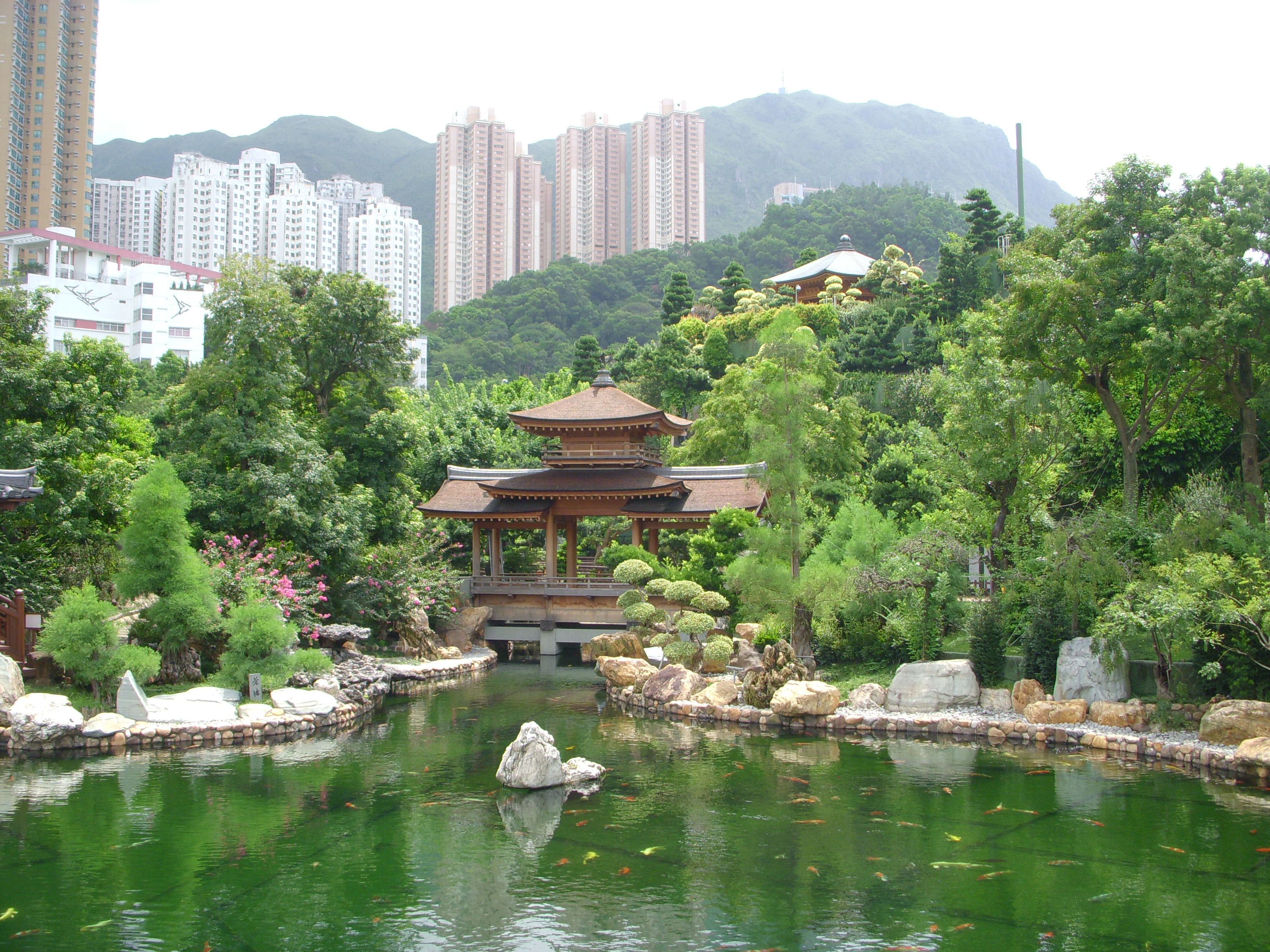 Les magnifiques jardins du couvent au milieu des tours de Kowloon