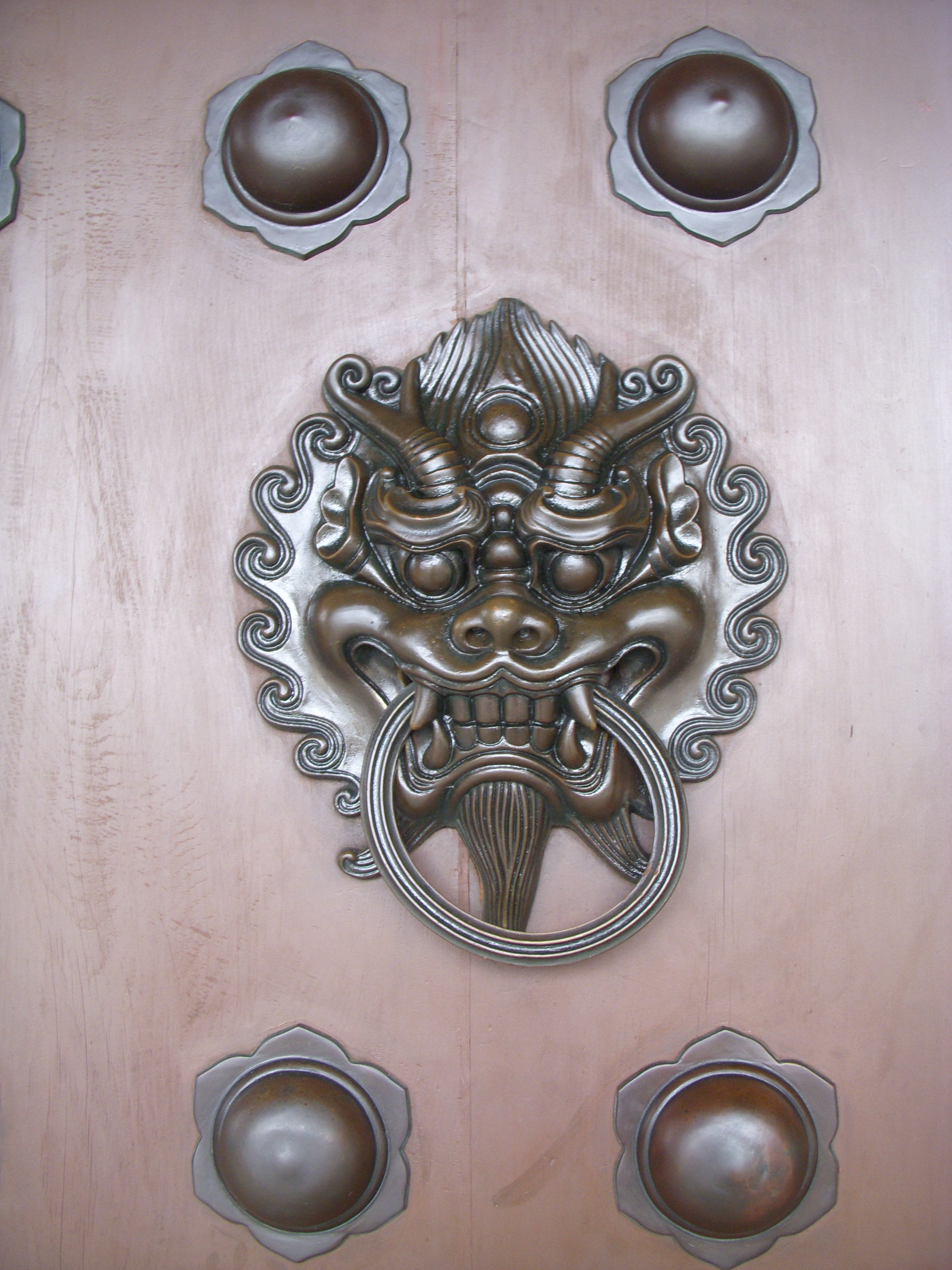 Un autre dragon qui n’a pas l’air très accueillant non plus en guise de poignée de porte…le visiteur réfléchit peut-être à deux fois avant de frapper.