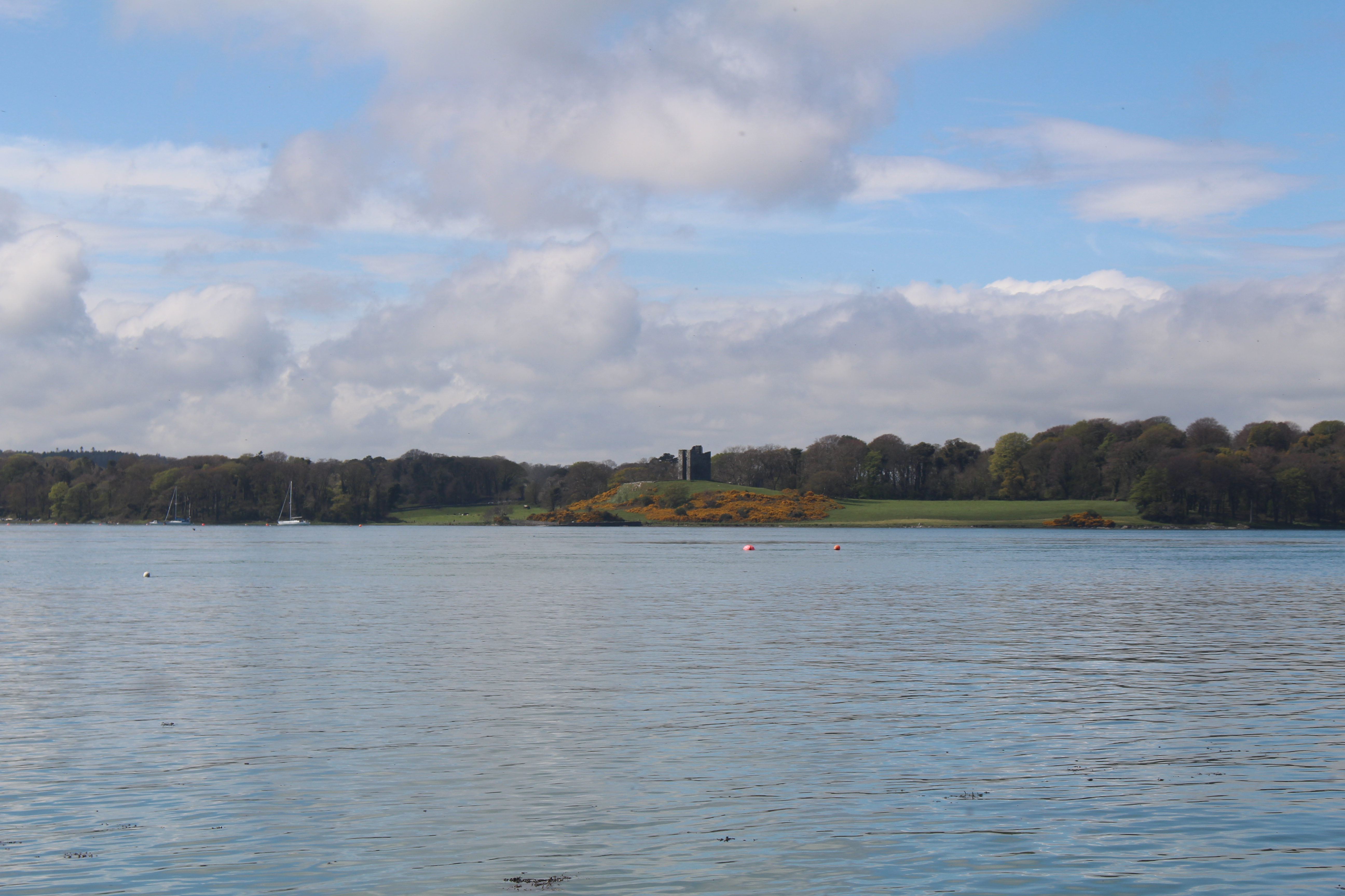Tout en bas du Strangford Lough se trouve le village de Portaferry (rive est). A cet endroit, les eaux du lac rejoignent la mer d’Irlande. Si on veut faire le tour du lac, il faut donc traverser ce petit bras de mer avec un petit bac. Ce petit ferry nous emmène donc de l’autre côté dans le village de Strangford. Au loin on aperçoit le domaine de Castle Ward (malheureusement payant donc je n’ai fait que passer).