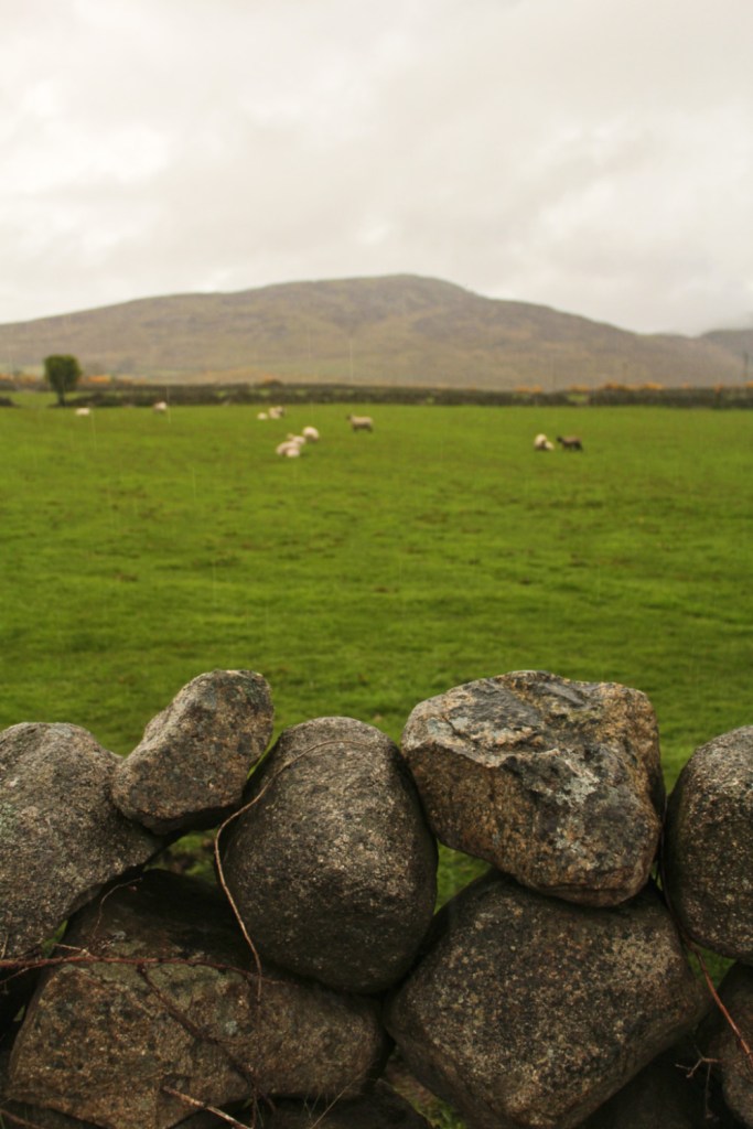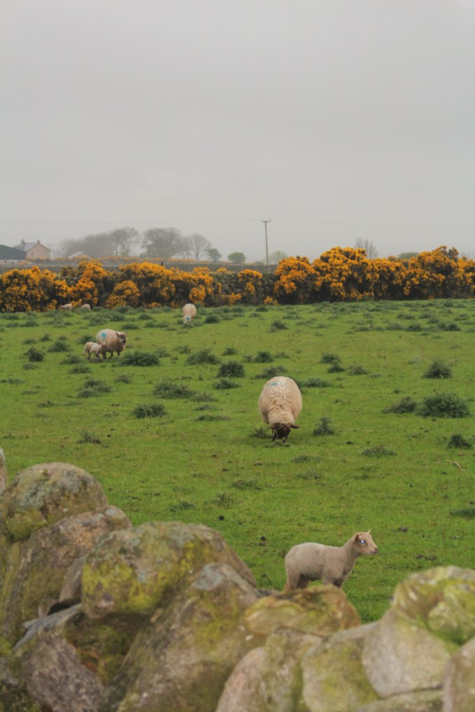 Je crois que je pourrais résumer les Mournes ainsi: des collines dorées, un ciel qui joue avec nous, des champs verts, des ajoncs disséminés dans tous les coins pour mettre un peu de couleur, des petits murets de pierre, et des moutons, des moutons et encore des moutons. Le ciel n’était vraiment pas de la fête sur la plupart de notre traversée et les montagnes étaient souvent perdues dans la brume et l’épais brouillard. C’était très impressionnant de le voir descendre sur nous ainsi, et ça a donné un côté très dramatique à notre road trip.