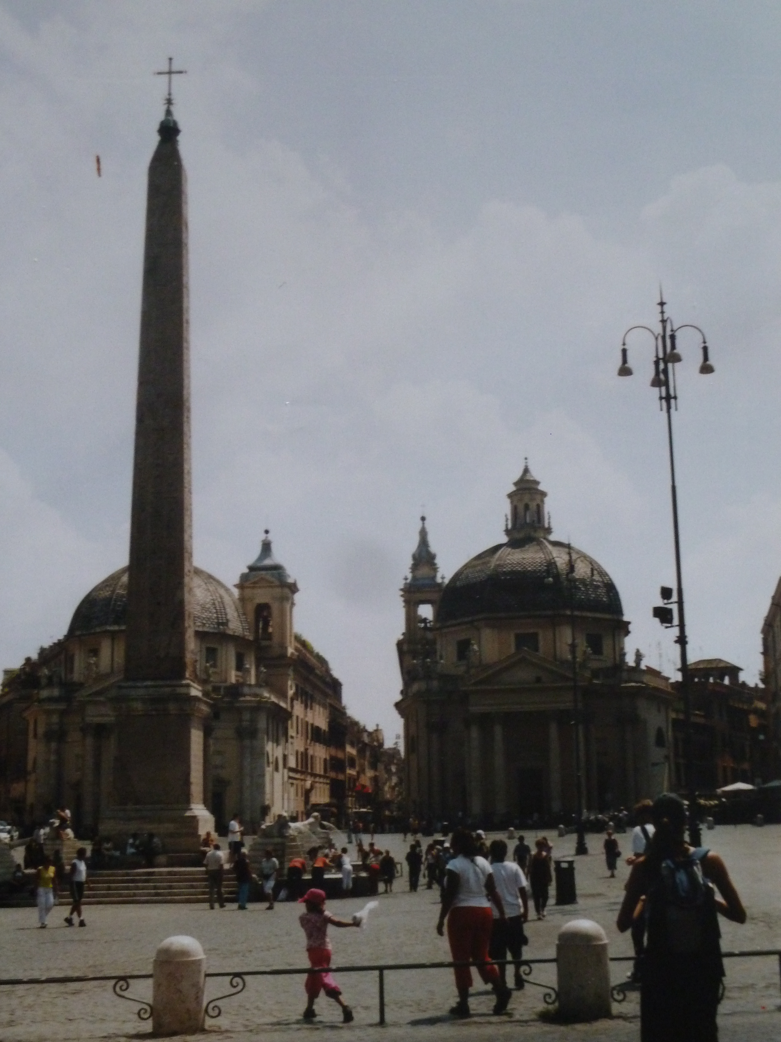 De l’autre côté du Tibre se trouve la plupart des monuments de Rome. La Piazza del Popolo (place du peuple) se situe à l’une des anciennes entrées de la ville, dominée par la Villa Borghese. Trois églises encerclent la place, la Chiesa di Santa Maria del Popolo (qui donna son nom à a place), la Chiesa Santa Maria dei Miracoli et la Chiesa Santa Maria in Montesanto (ces deux dernières presque jumelles sur la photo).