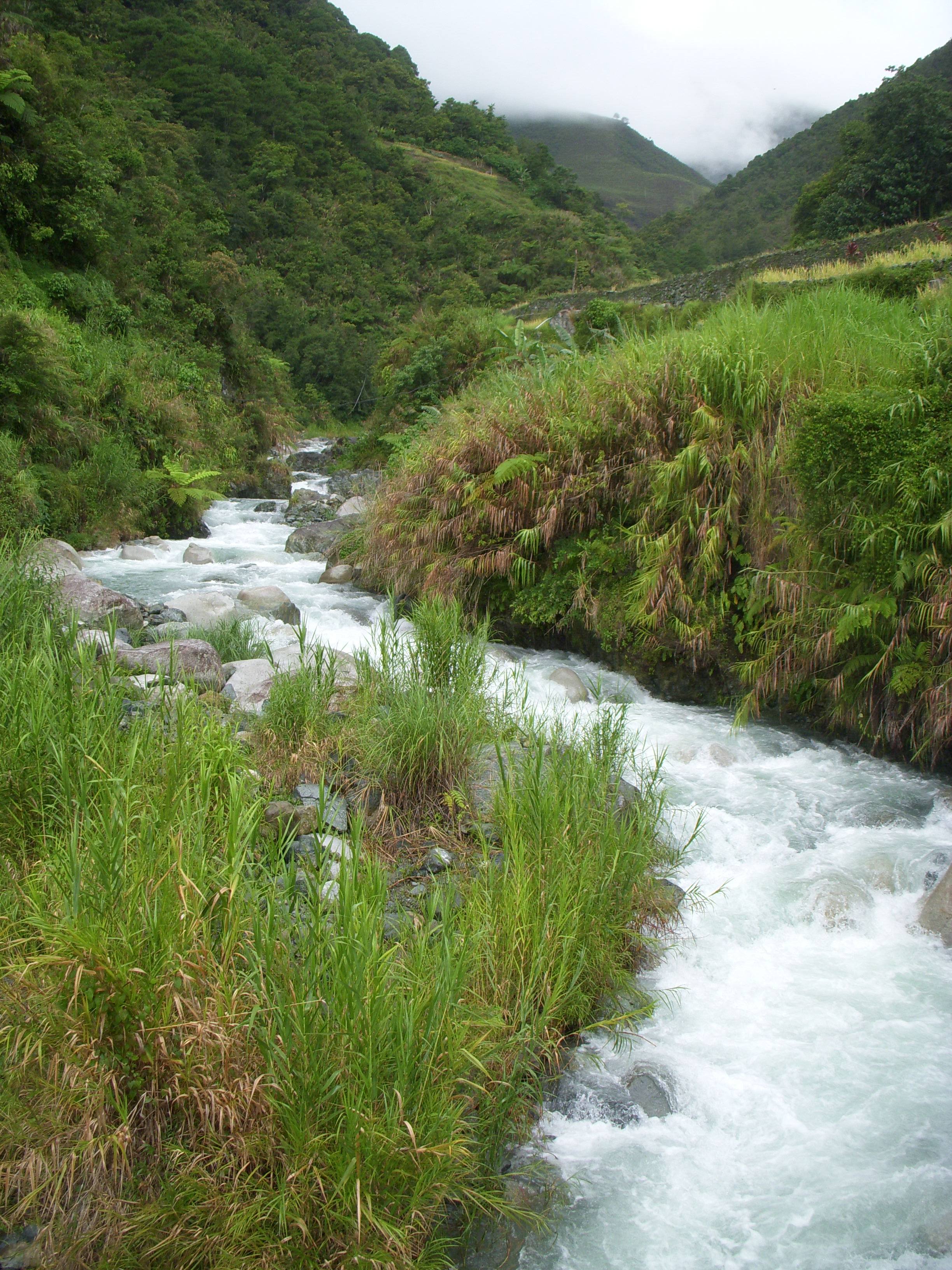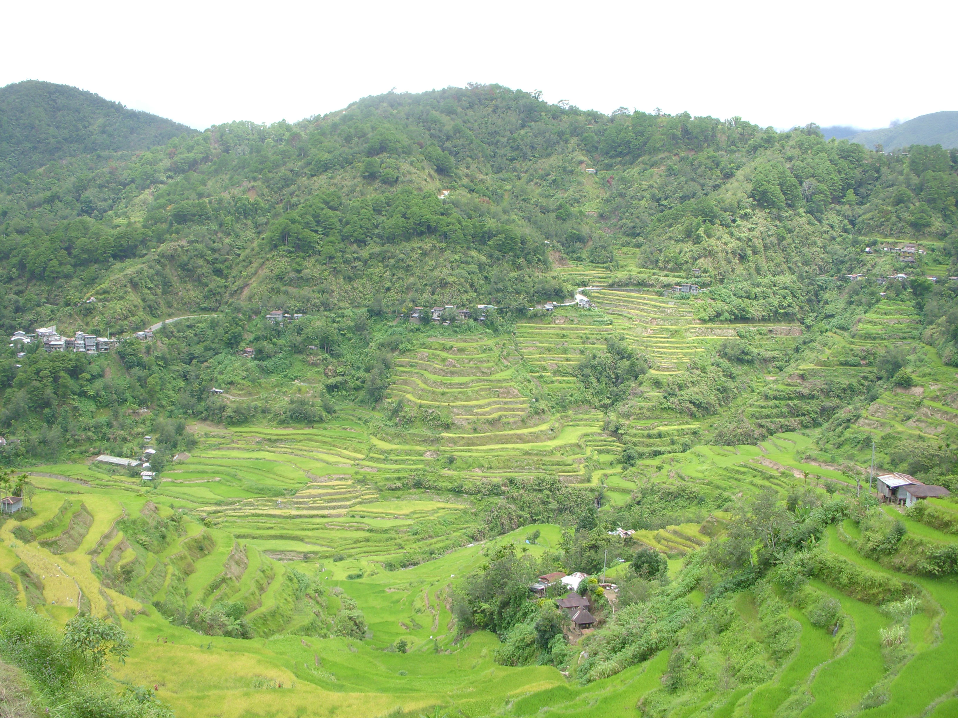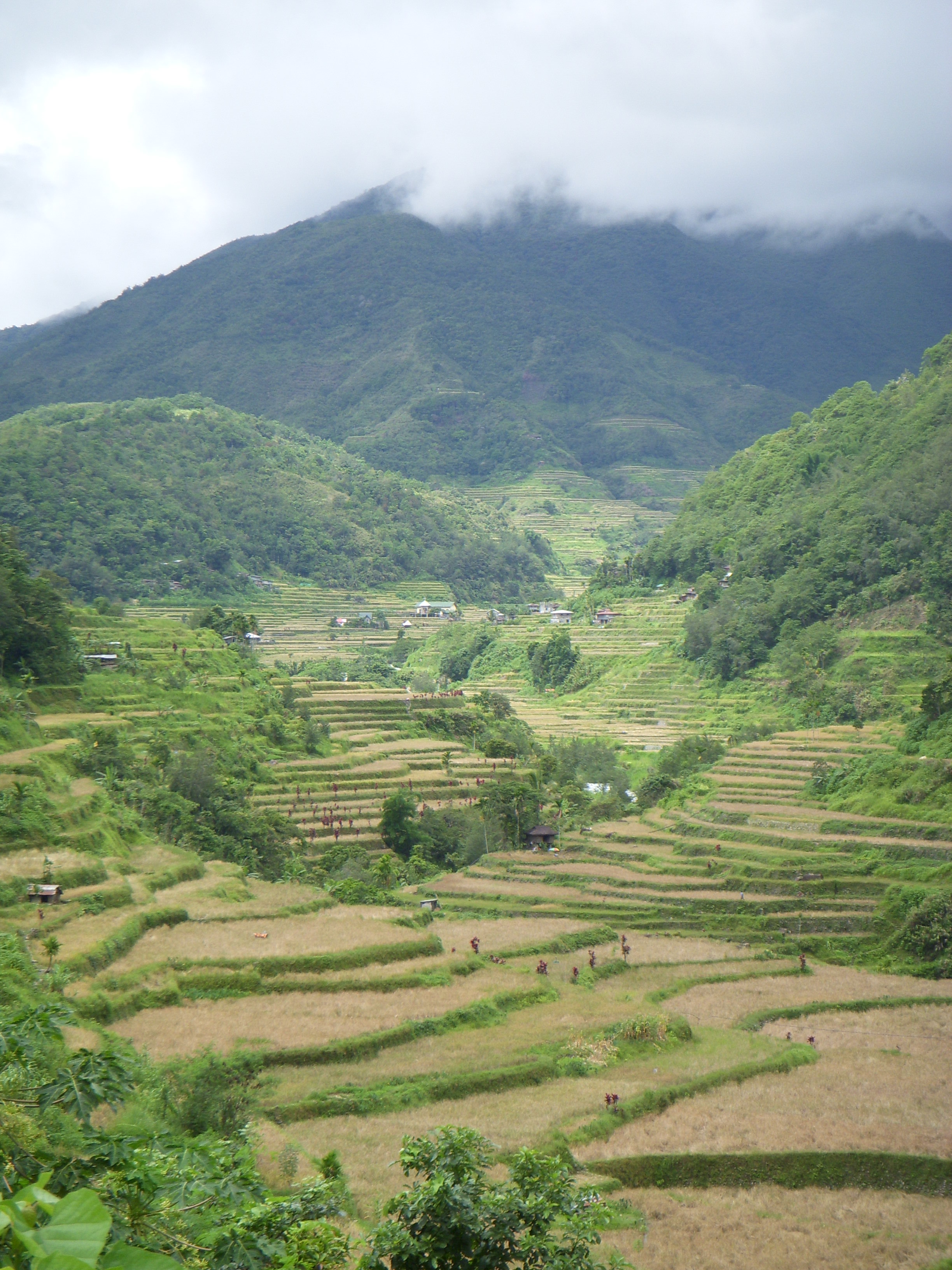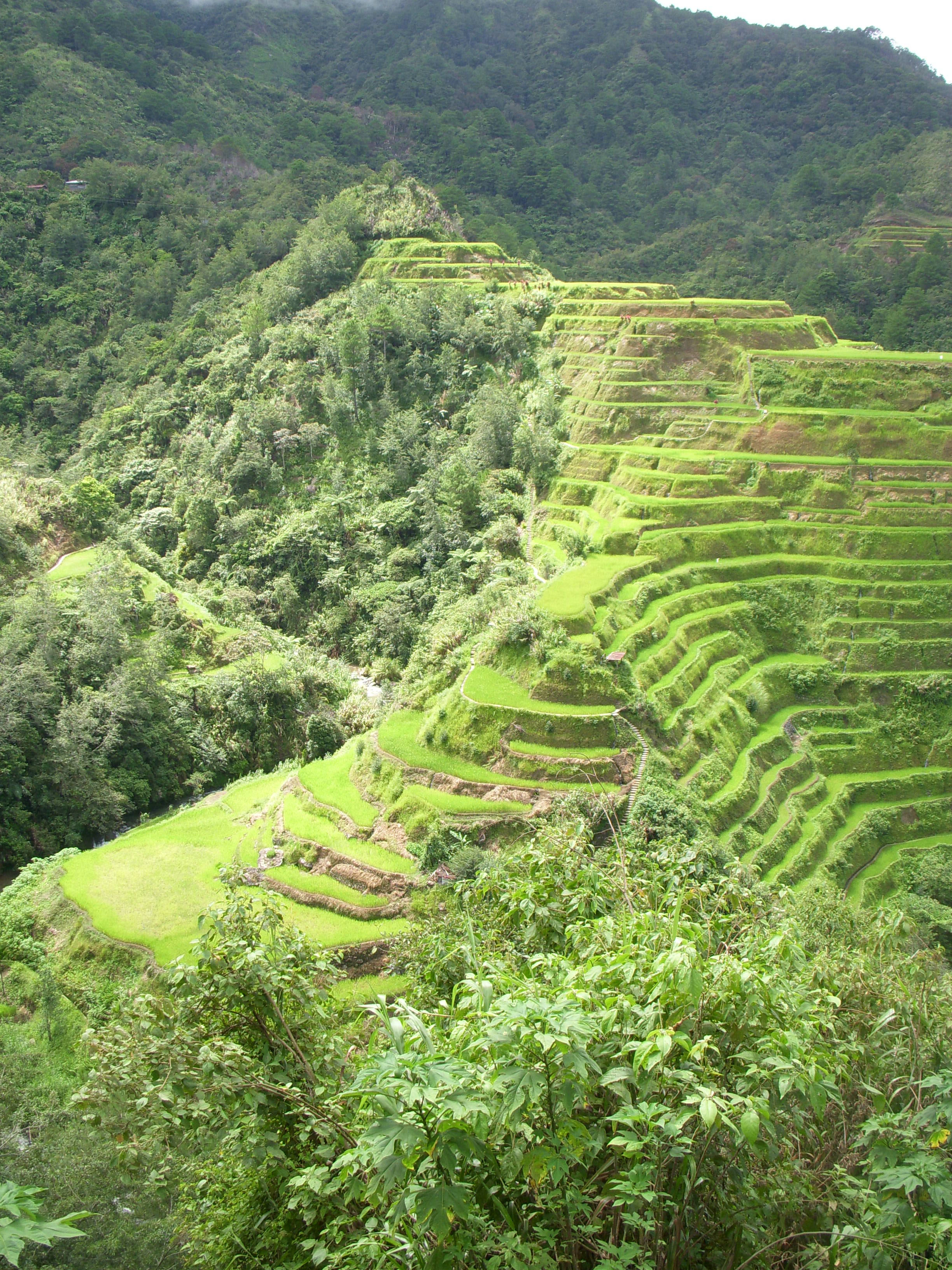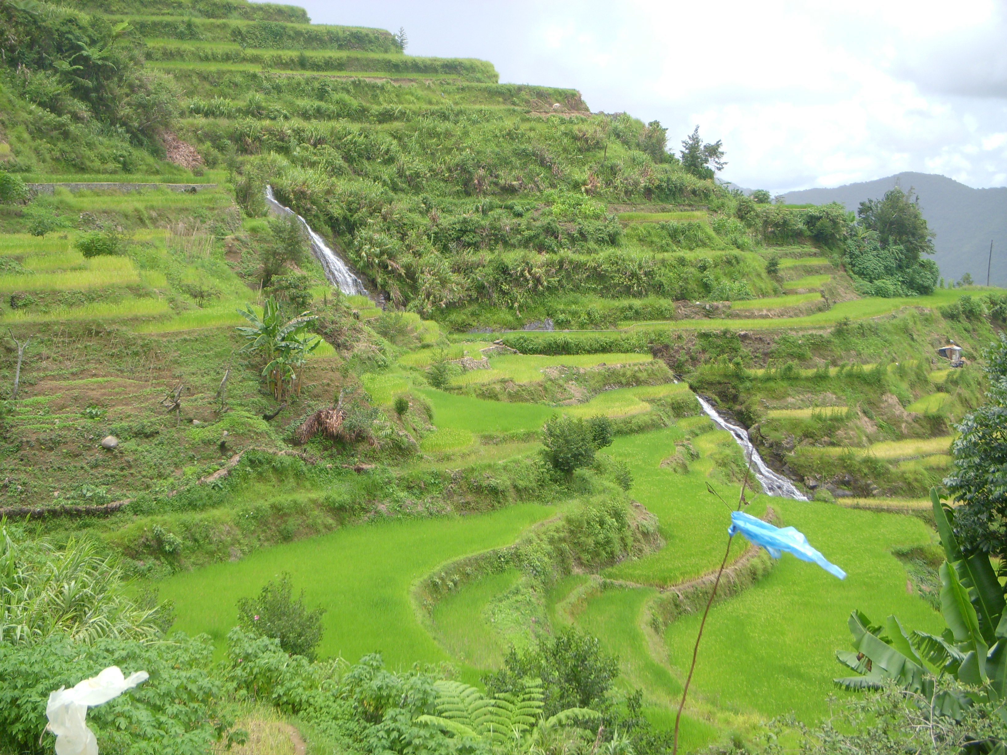 Les rizières ont été construites par le peuple Ifugao il y a plus de 2000 ans. Leur réalisation est impressionnante. Je n’ai d’ailleurs toujours pas compris comment ils arrivaient à irriguer et maintenir le niveau d’eau dans les terrasses. Il y en a partout où le regard se pose. La randonnée nous emmène au milieu des terrasses, à jouer un peu au funambule sur les murets, à grimper les marches interminables qui nous mènent vers d’autres terrasses. Moi qui viens d’une région très plate, je suis impressionnée par le relief.