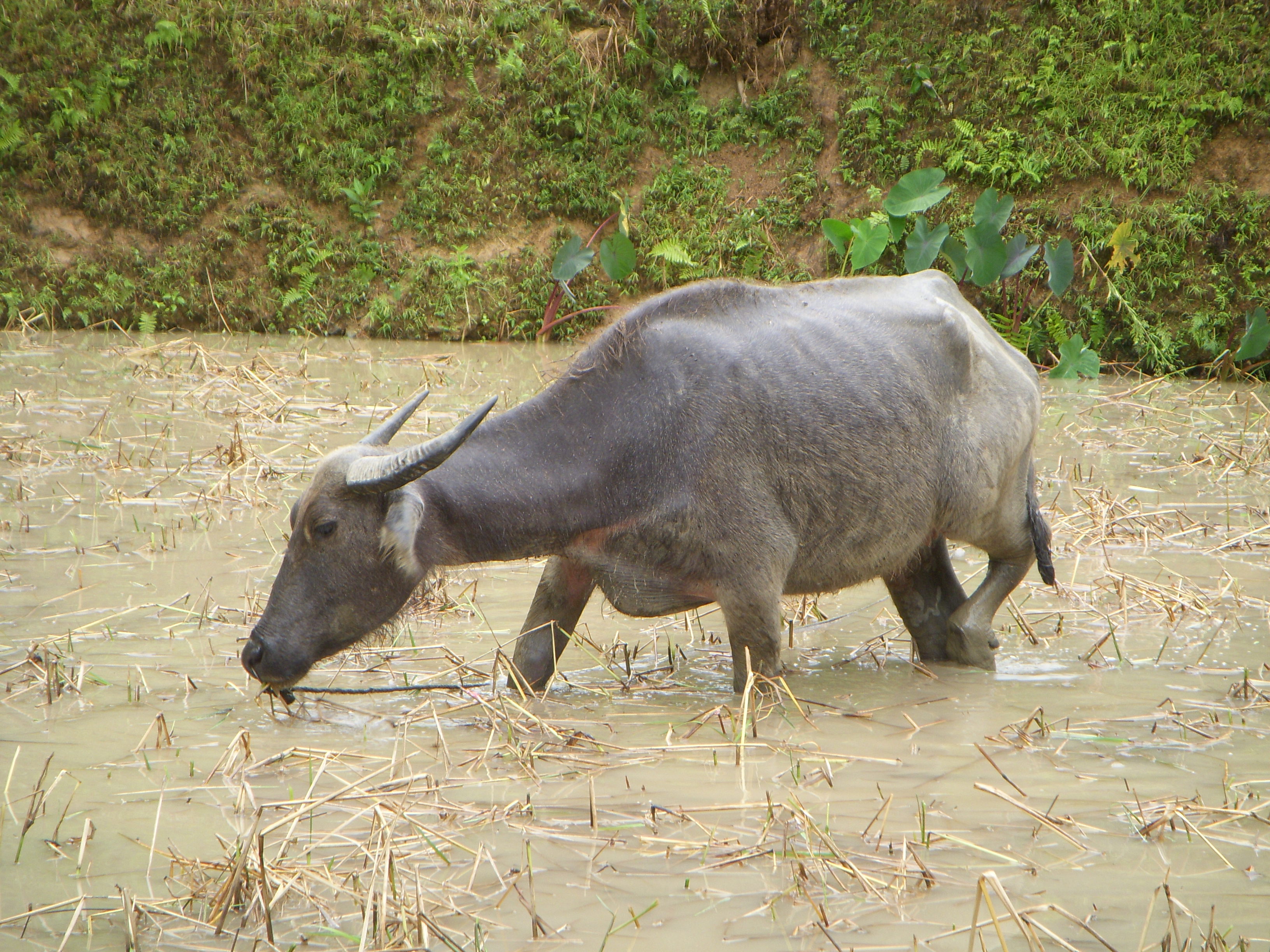 Nous croisons du monde dans les rizières, des paysans qui préparent des bottes de riz, qui les transportent à travers la vallée. Nous croisons aussi quelques kalabaw (sorte de buffles d’eau très fréquente aux Philippines) qui profitent de l’eau des rizières. C’est un peu l’animal emblématique du pays.